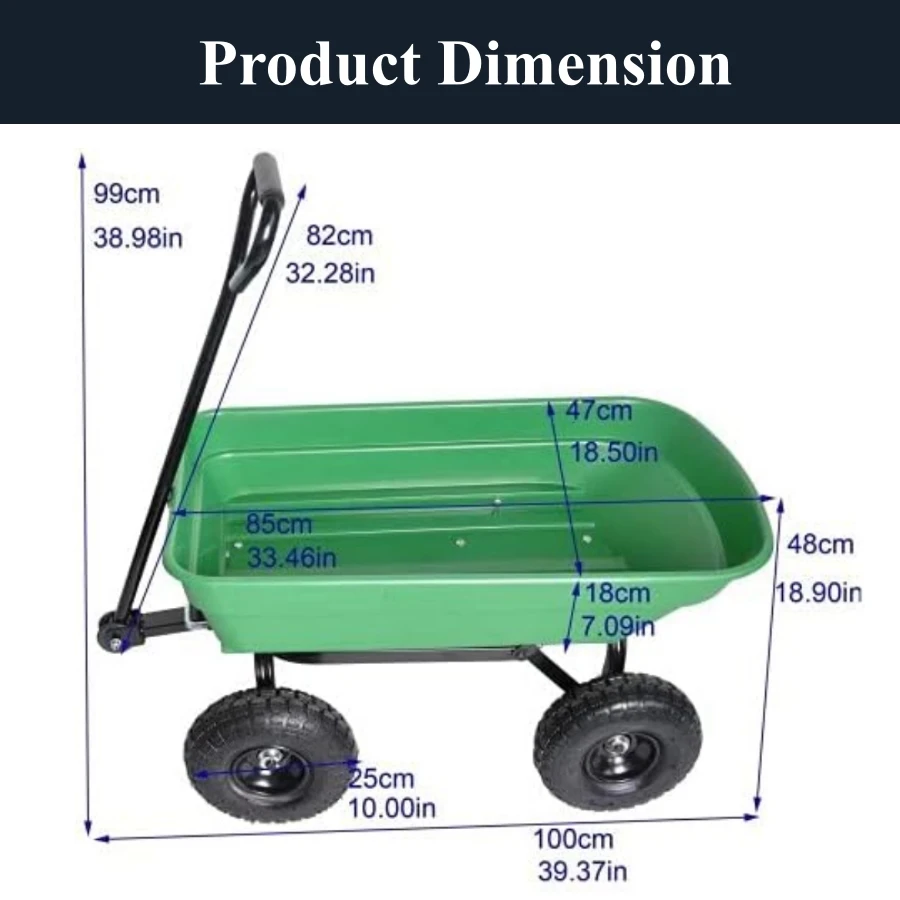 - Heavy-Duty Steel Frame and Poly Bed: The frame of our garden dump cart is constructed of strong and durable heavy-duty steel,The Garden Cart are made of high quality rubber and are strong and durable. Its edge is round-handled, which protects your hands while using the cart. This Garden Dump Cart Yard Cart can be conveniently used in various environments, such as gardens and warehouses.
