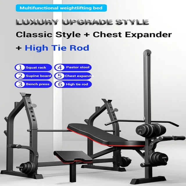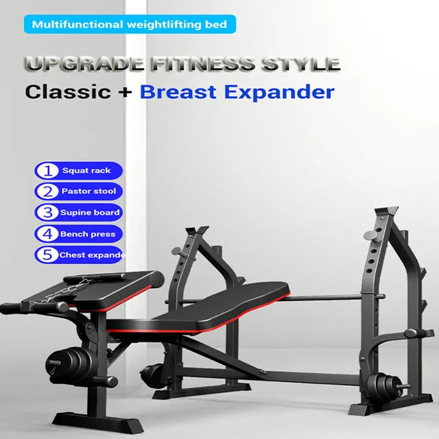 Home/Gym Multifunctional Squat Rack and Bench Press Folding Weight Bench Exercise Equipment Fitness Set Dumbbells and Barbells