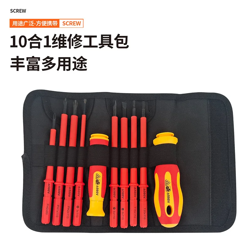 Insulated electrician screwdriver high hardness set household magnetic cross word shaped plum blossom hexagonal screwdriver