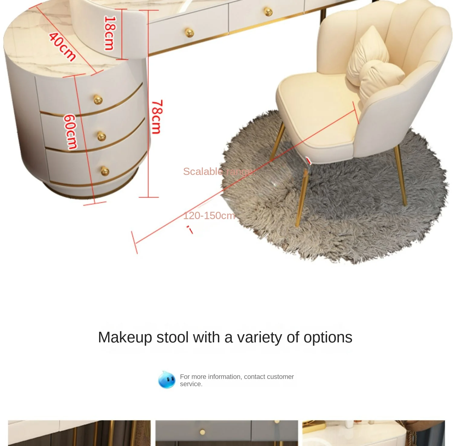 Elevate your vanity game with our luxurious LED mirror dressing table. Crafted with a gold Nordic design, this dressing table comes with ample storage space for all your makeup essentials. Perfect for the modern woman, this European penteadeira is fit for a princess. Expertly designed for your ultimate makeup experience.
