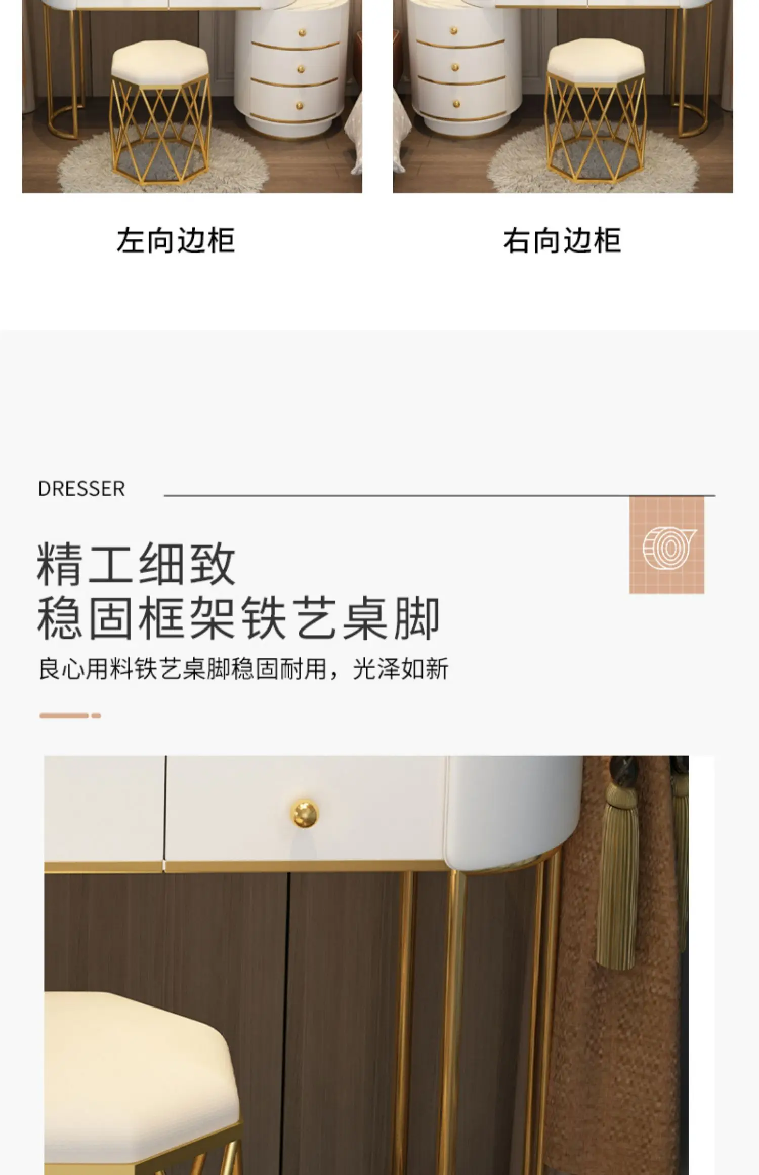 Luxury Led Mirror Dressing Table Gold Nordic Bedroom Storage Dressing Table Set Woman European Penteadeira Princess Makeup Stand