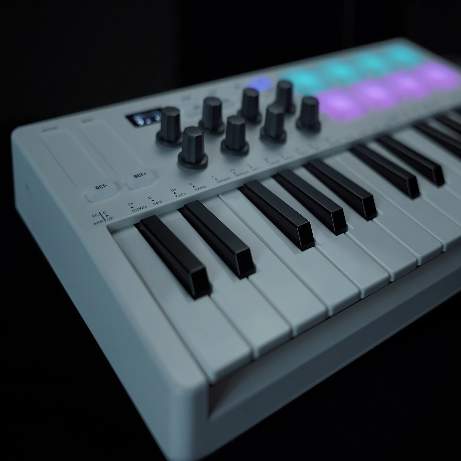 8 RGB back-lit pads with velocity-sensitive & aftertouch.