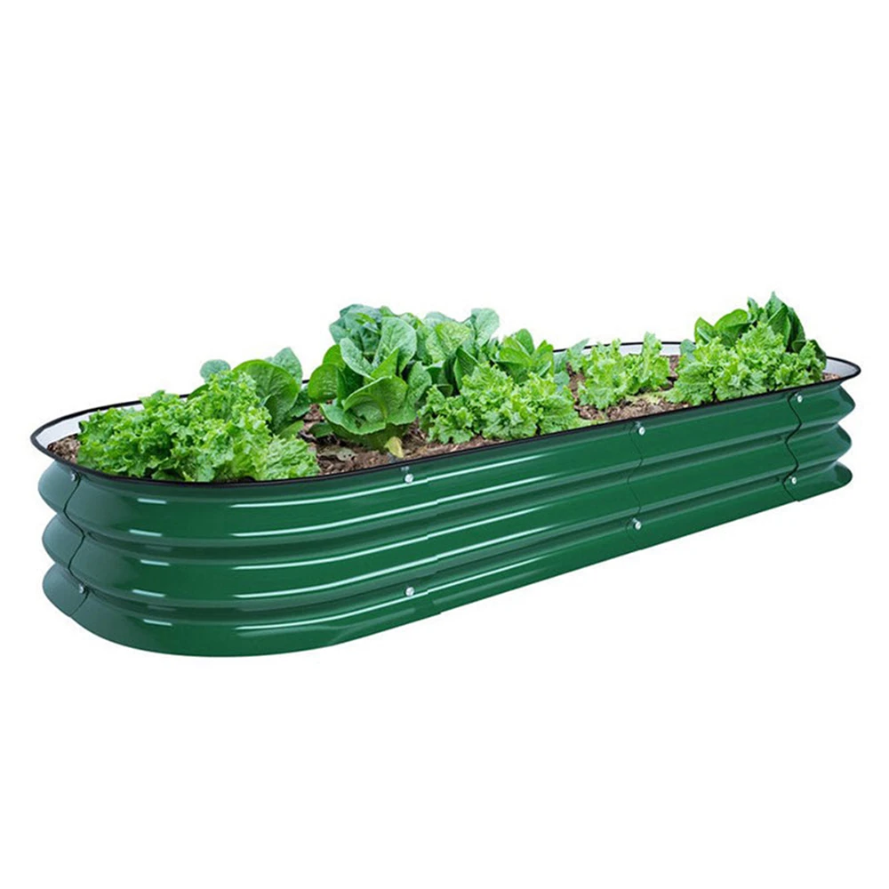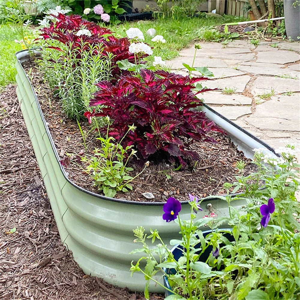 UPGRADED QUALITY AND STRUCTURE - Constructed with galvanized metal sheet, these garden beds feature an anti-corrosion galvanizing treatment and an oval structure design. This enhances their durability, making them resistant to rust and capable of withstanding greater pressure at the interface. The sturdy construction ensures they remain intact and can be reused for many years without deformation.