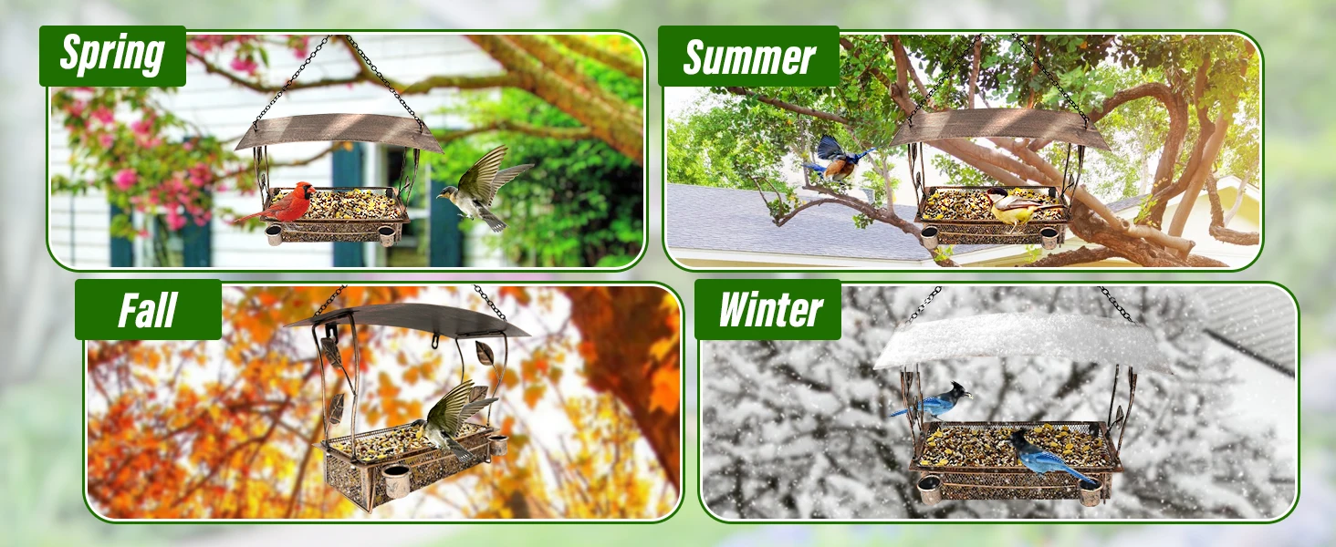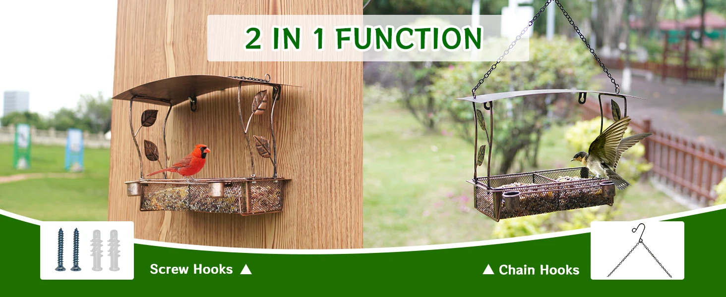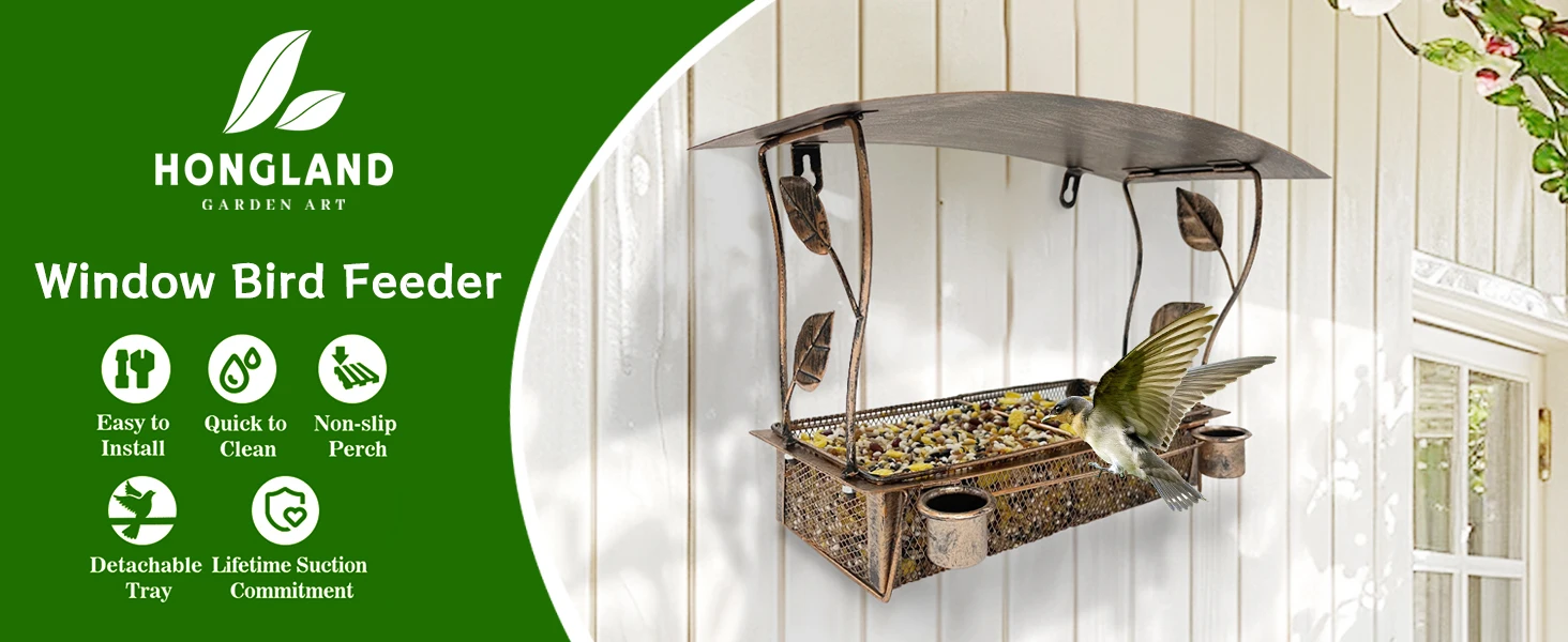 Metal Window Bird Feeder - Antique Bronze Hanging Bird Feeding Supplies - Decorative Outdoor Bird Feeder for Garden Window Patio
