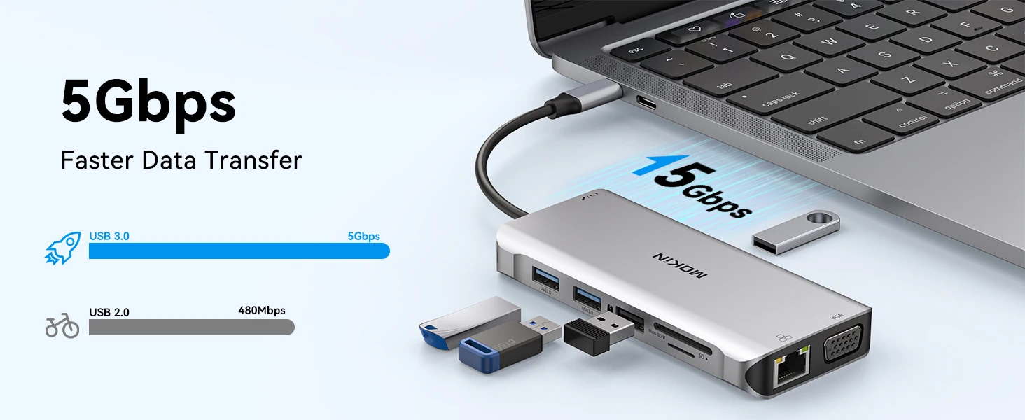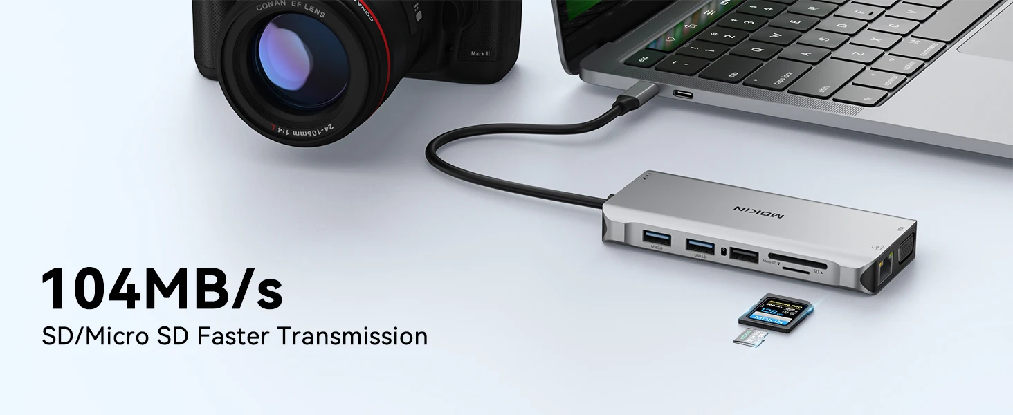 MOKiN USB C HUB USB 3.0 Docking Station RJ45 Gigabit Ethernet USB Type-C to Dual HDMI VGA For Macbook Air Pro iPad Pro SD Reader