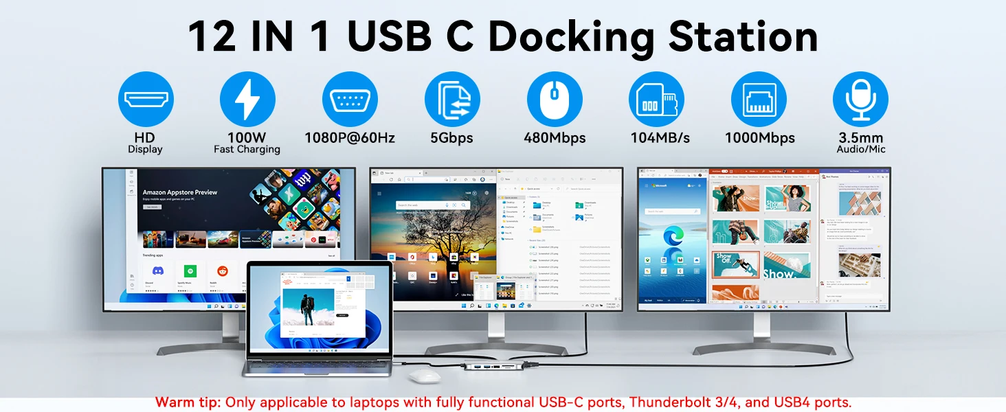 Our USB C Dock can mirror or extend laptop screen to external large screens to present 4K@60Hz(DP 1.4) Ultra-High-Definition and