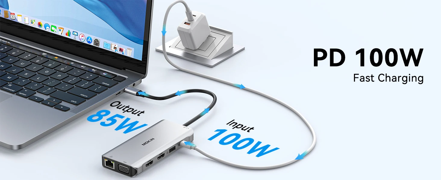 100W Power Charging Port (85W safty)Provide 100W Power Delivery for your usb c laptops.