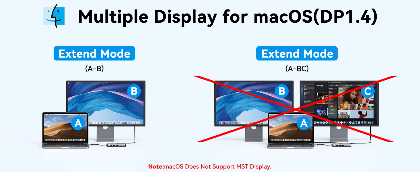 Extend mode:AB(2 display show)ABB(3 display show)ABB(4 display show) #Limited by Mac