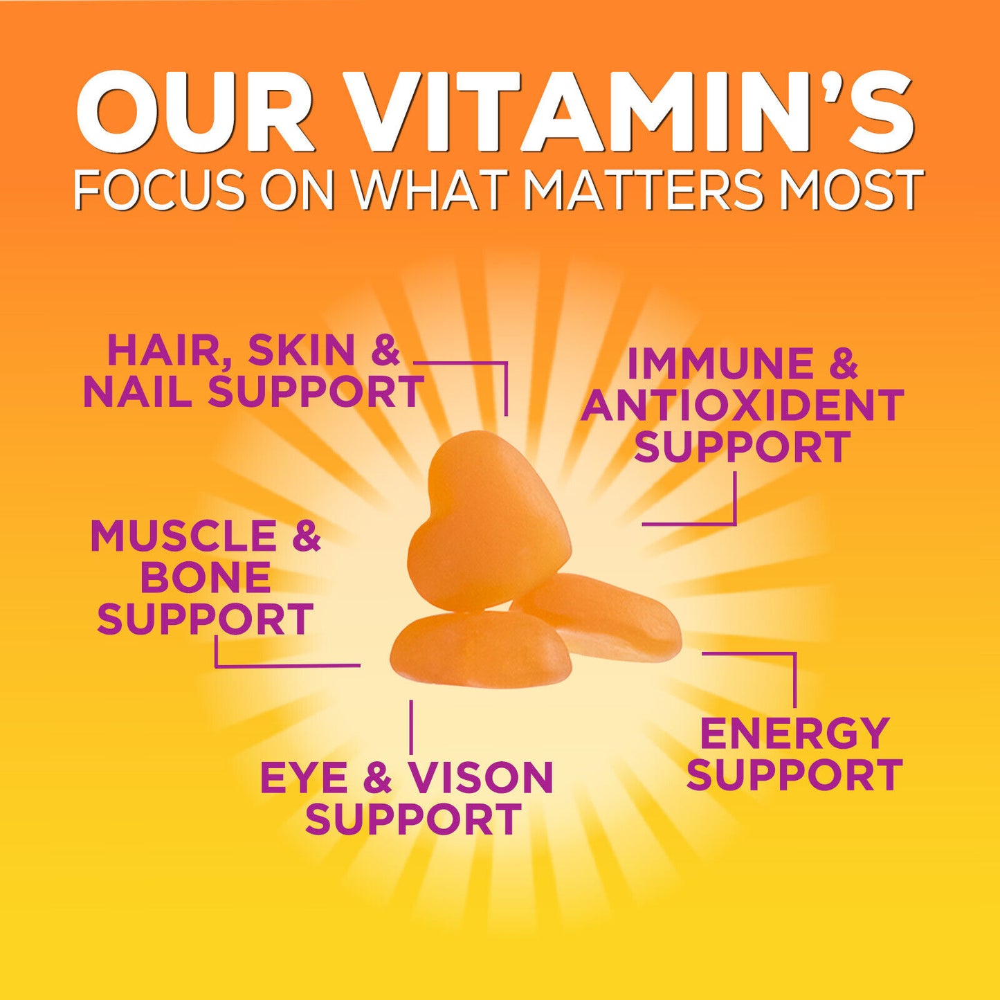 This women's multivitamin offers the highest potency of complete daily and multimineral support in the convenience of gummy form. With essential vitamins and minerals, it promotes better overall health and aids in meeting nutritional needs. Easy to take and packed with benefits, these gummies are a must-have for any woman's daily routine.