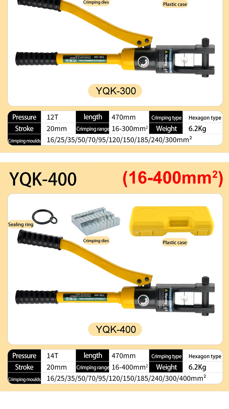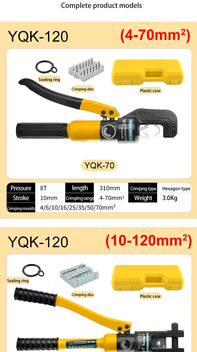 Myousho Hydraulic Crimping Tool YQK-70 Cable Lug Crimper Plier 4-70mm2 Compression Tool Pressure 8T Pressure