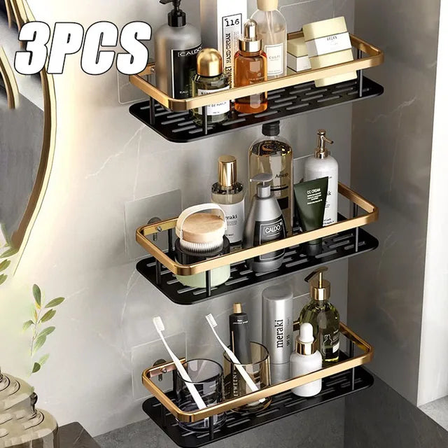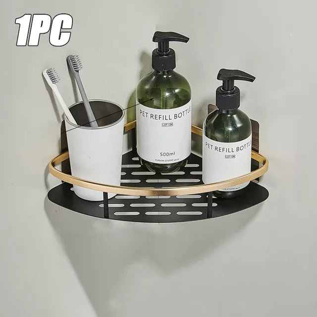 Expertly organize your bathroom with our Non-perforated Bathroom Shelf. This floating shelf can be easily mounted on your wall and provides ample storage space for all your shower hardware, bathroom corner shelf, and wall storage needs. With a sleek design and sturdy construction, it's the perfect addition to any modern bathroom.