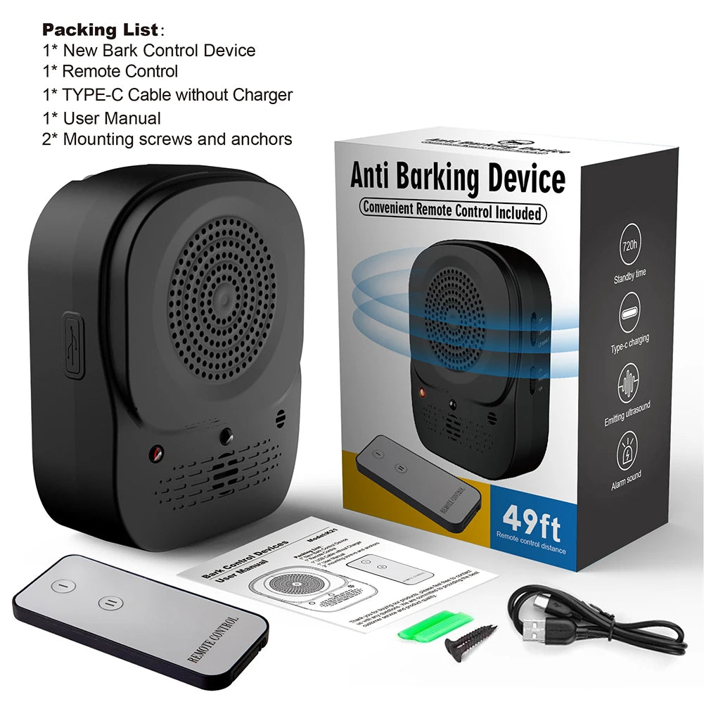 Ultrasonic Stop Barking Training Device 4 Level Dog Barking Control Devices Waterproof 49FT for Small Medium Large Dogs