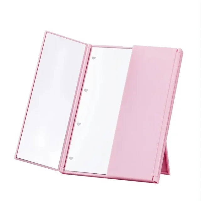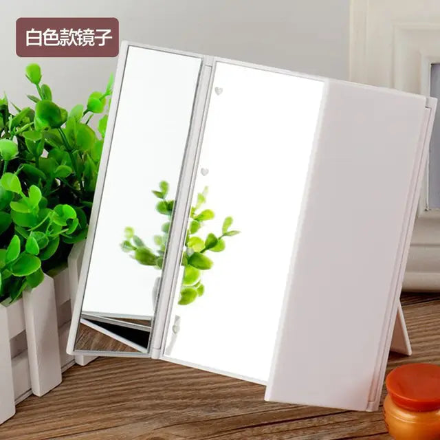 Tri-Fold Lighted LED Mirror Travel Mirror Compact Pocket Mirror Makeup with Comb