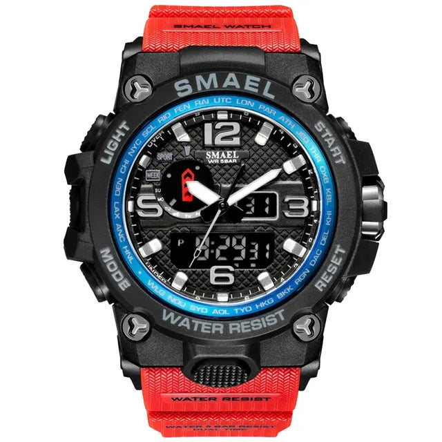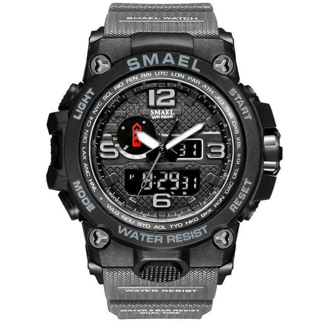 SMAEL New Sport Watch Mens 50M Waterproof Clock Alarm 1545D Dual Display Wristwatch Quartz Military Watches For Men