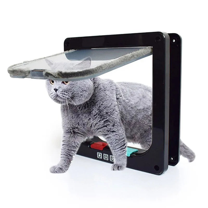 Smart Pet Door 4 Way Locking Security Lock ABS Plastic Dog Cat Flap Door Controllable Switch Direction Doors Small Pet Supplies