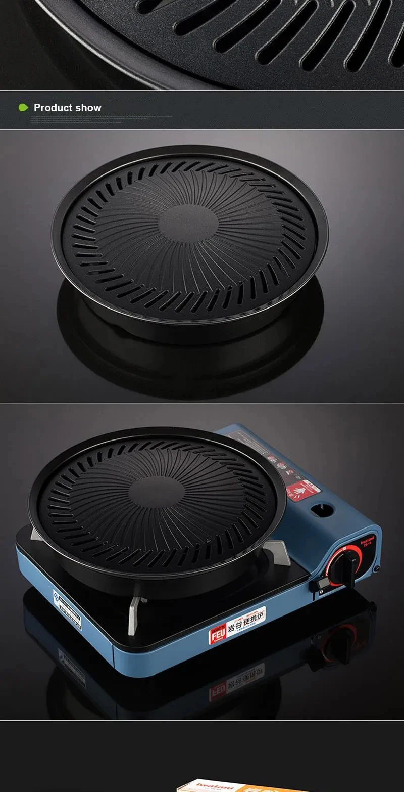 Korean Non-stick Barbecue Tray Outdoor Cassette Oven Grill Pan Indoor Round Bakeware Smokeless BBQ Tool for Outdoor Camping BBQ