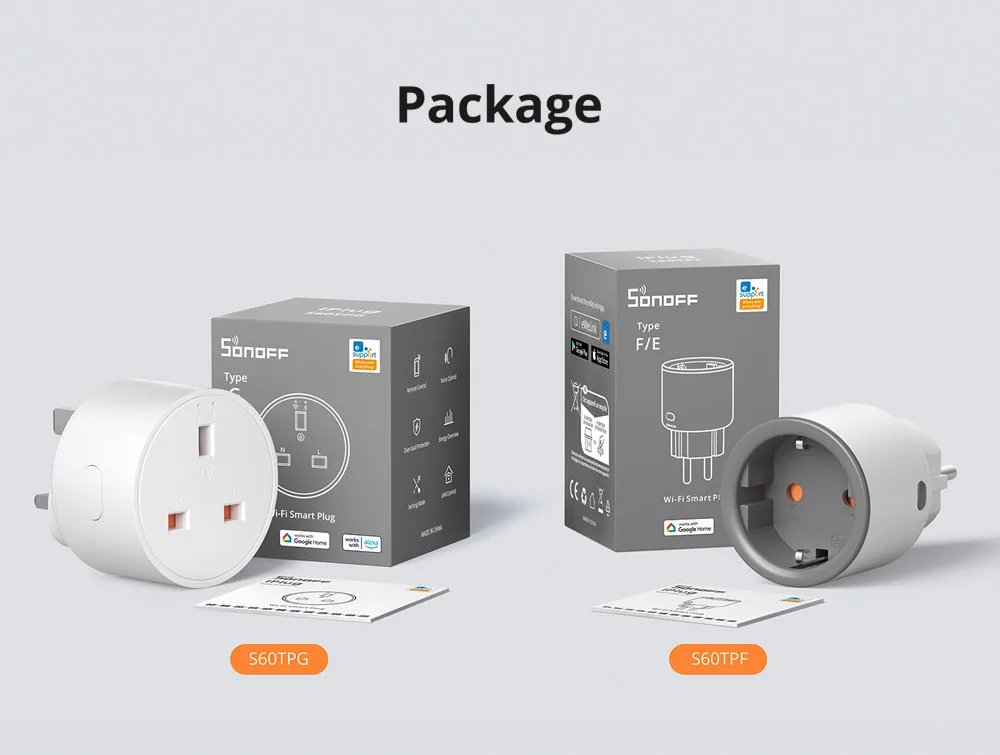 【App & Voice Control】 Control S60 plug from anywhere, anytime via the eWeLink App, or give voice commands to Alexa, or Google.