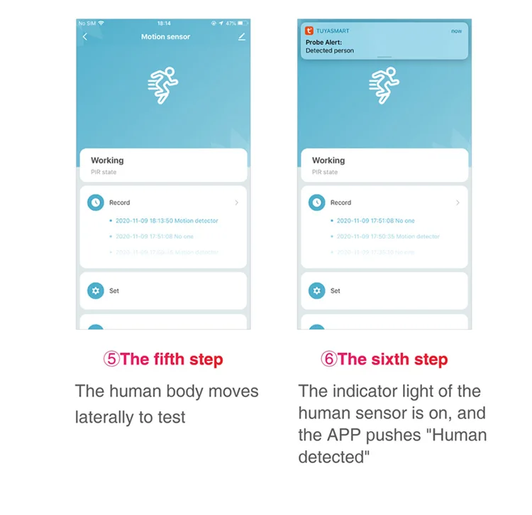 【Emergency Alert Push Function with Movement Detected】When there is movement detected, the movement tuya motion sensor alert notifications will be pushed to your phone, be aware of what's happening at home even when you're away.