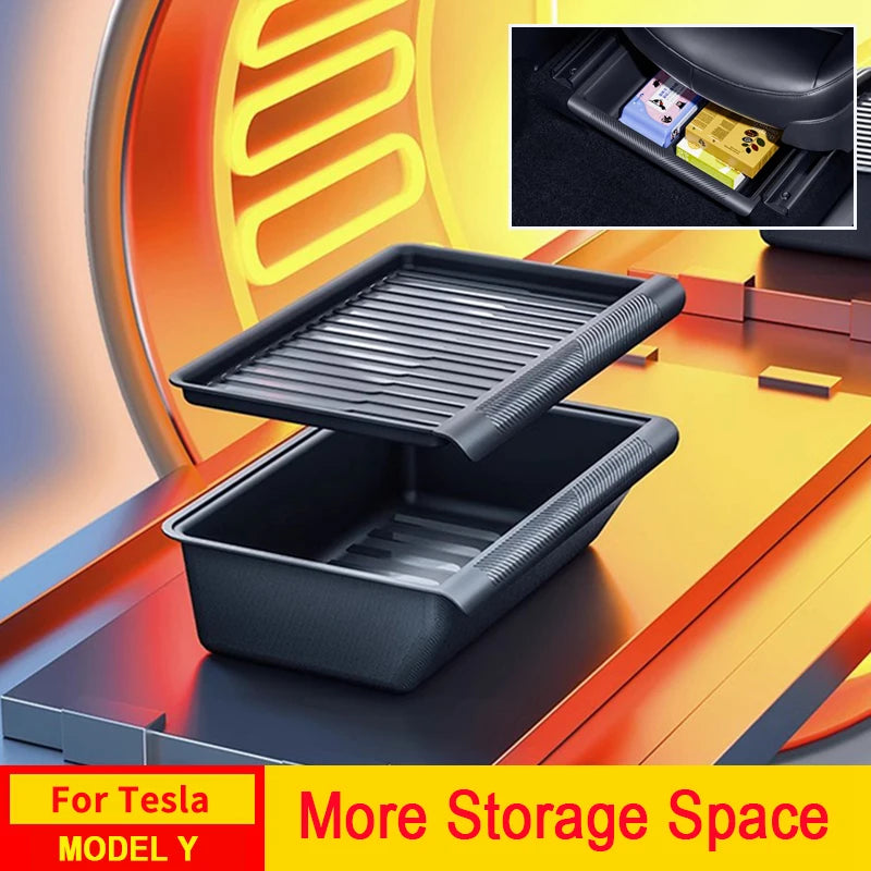 Under Seat Storage Box for Tesla Model Y Centrol Console Organizer Accessories Underseat Hidden Store Space Bins Chair Tray 1pcs