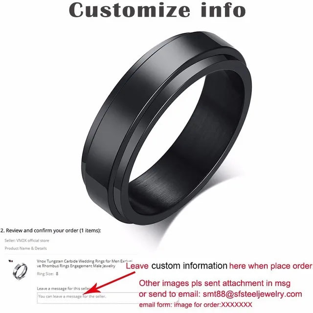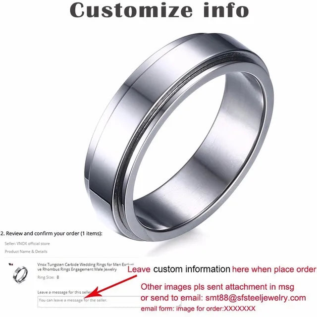 Vnox Personalized Spinner Ring for Men Women 6mm Stainless Steel Rotatable Wedding Band Custom Name Date Initial Male Tail Ring