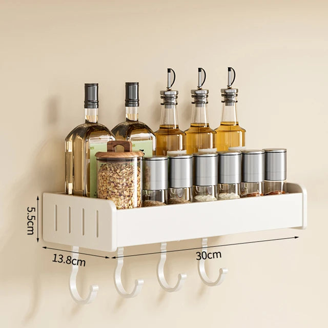 Wall Mounted Kitchen Condimenters Spice Rack Organizer Shelf Kitchen Storage Wall Shelf Organizers Hanging Hook Rack For Kitchen