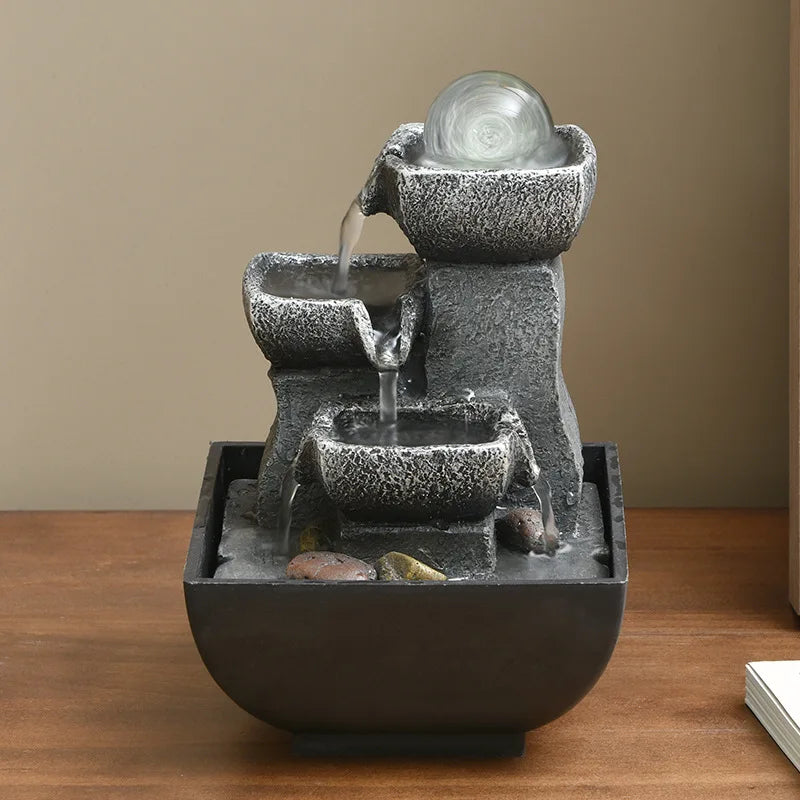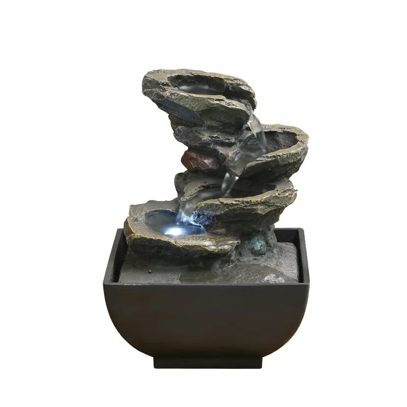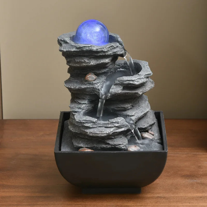 Water Fountains Indoor Tabletop Fountain With Pump Waterfall Fountain Coloured LED Lights Desk Water Fountains for Home Decor