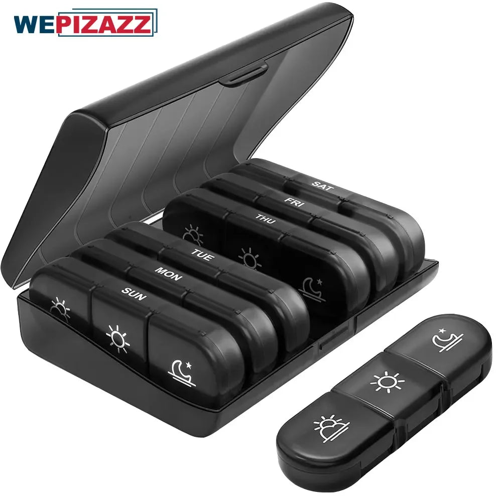 Weekly Pill Organizer 3 Times A Day, Portable Travel Pill Box 7 Day, Pill Case for Vitamins, Medication, Supplements & Fish Oils