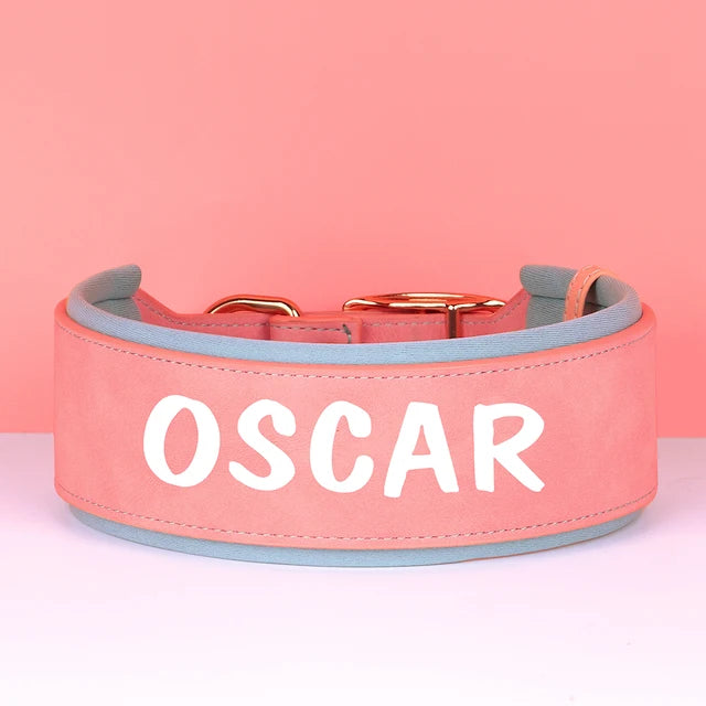 Wide Personalized Dog Collar PU Leather Customized Dogs Tag Collars Soft Pet Collar for Small Medium Large Dogs Pitbull Buldog