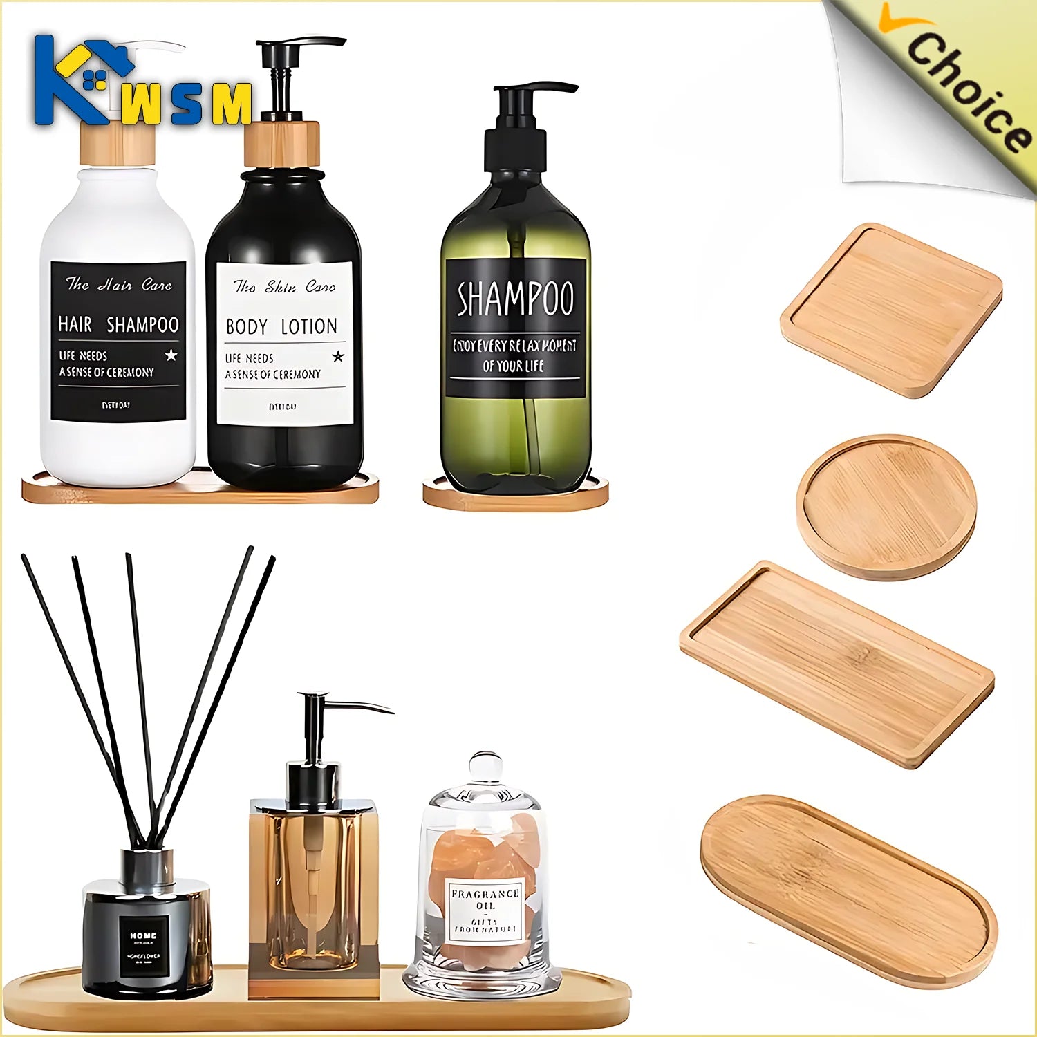 Wooden Soap Dispenser Tray Vanity Countertop Bottles Organizer Holder Round Square Candles Jewelry Storage Tray for Bathroom