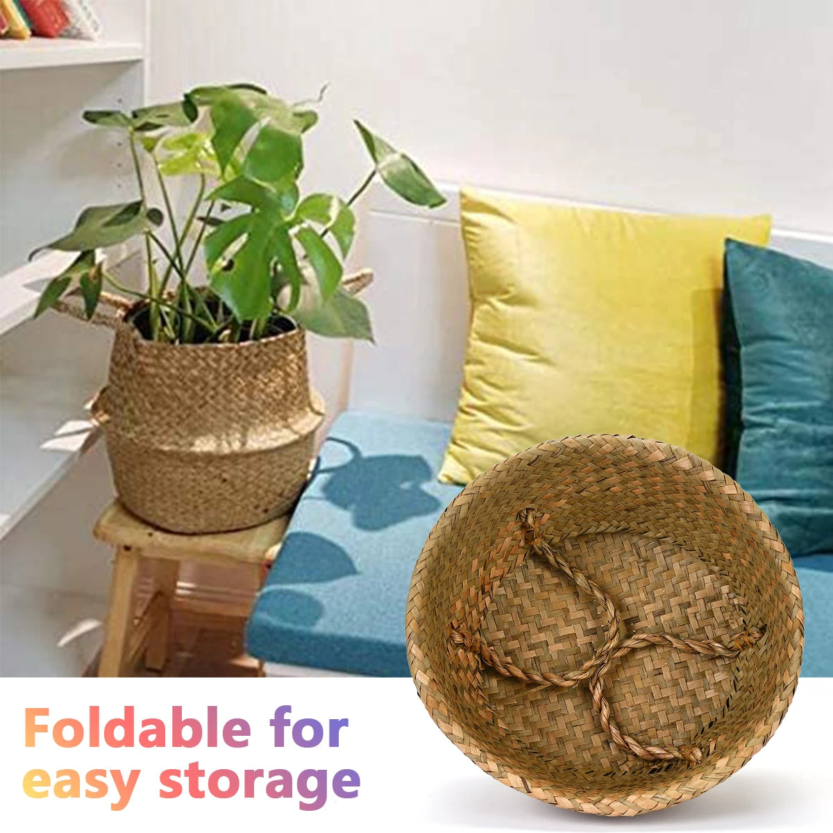 Woven Storage Basket Natural Seagrass Handmade Folding Clthoes Laundry Basket Straw Wicker Rattan Storage Flower Pot Beach Bag