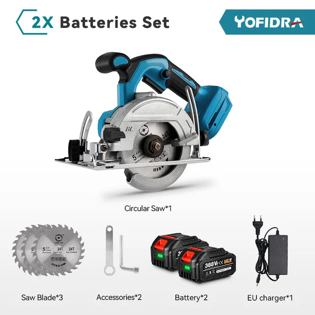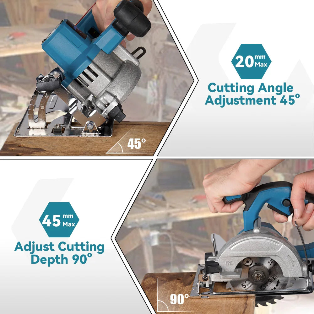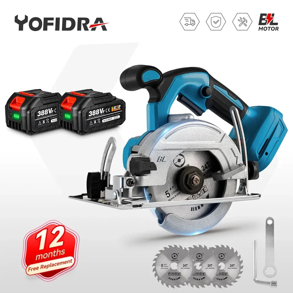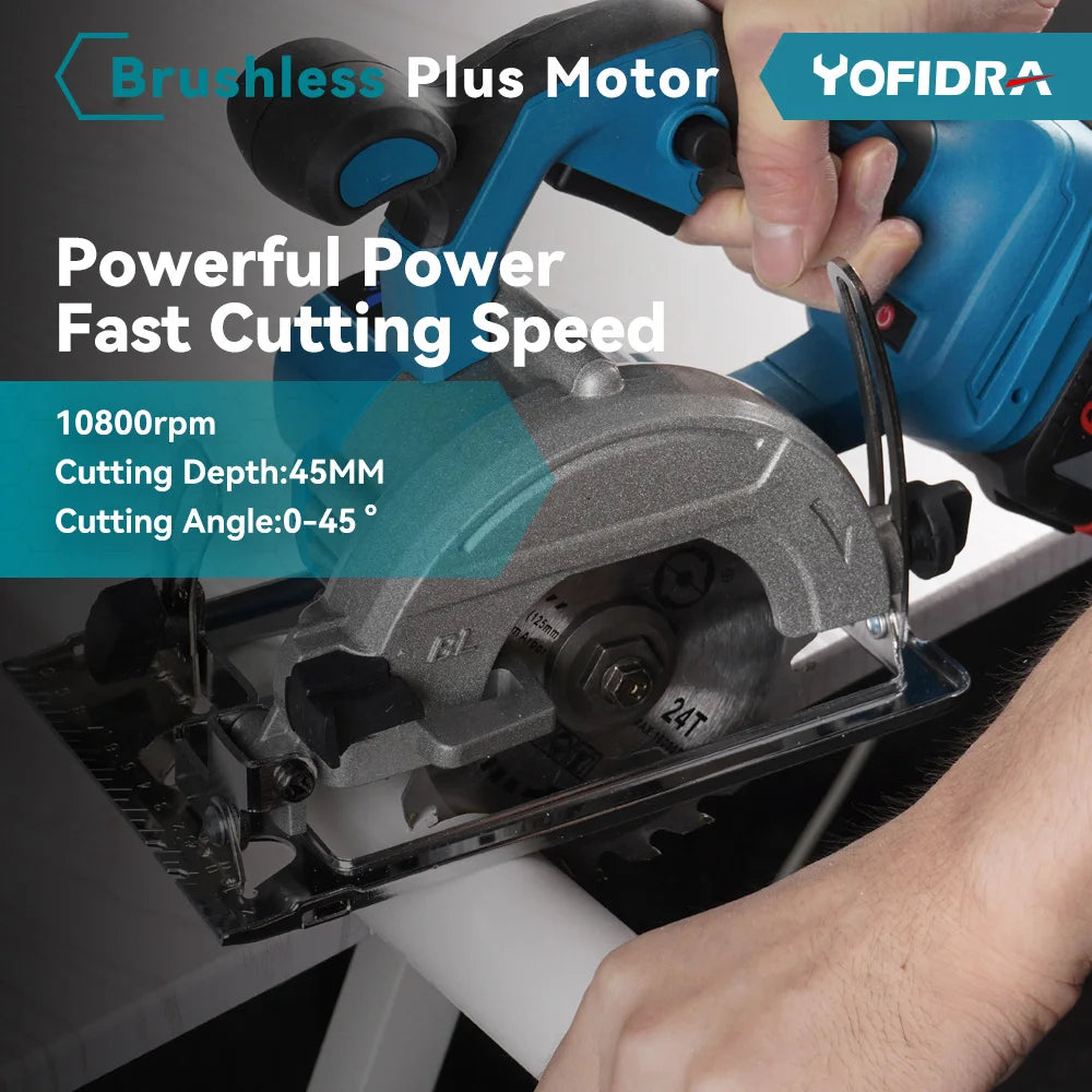 Yofidra 5 Inch 125mm Brushless Cordless Electric Circular Saw 0° to 45° Adjustable Wood Cuttiing Machine For Makita 18V Battery
