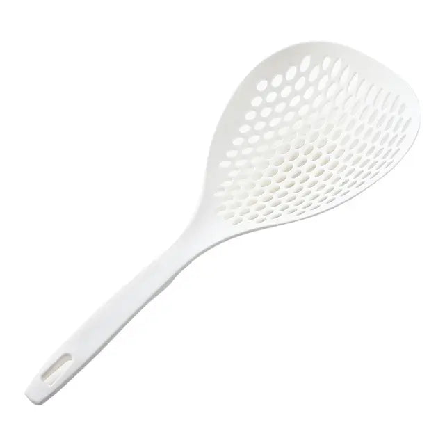 Cuchara blanca de gran capacidad, resistente a altas temperaturas, bolas de masa colgadas, red con fugas, no fácil de deformar, suministros de cocina, 1 ud.