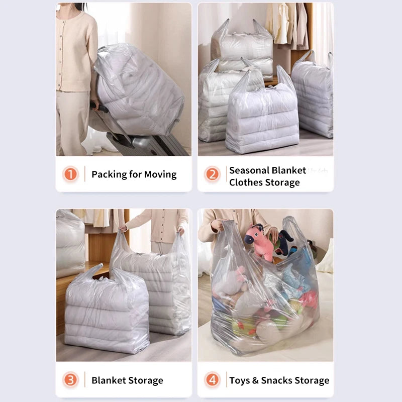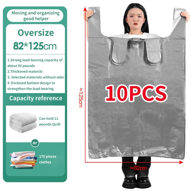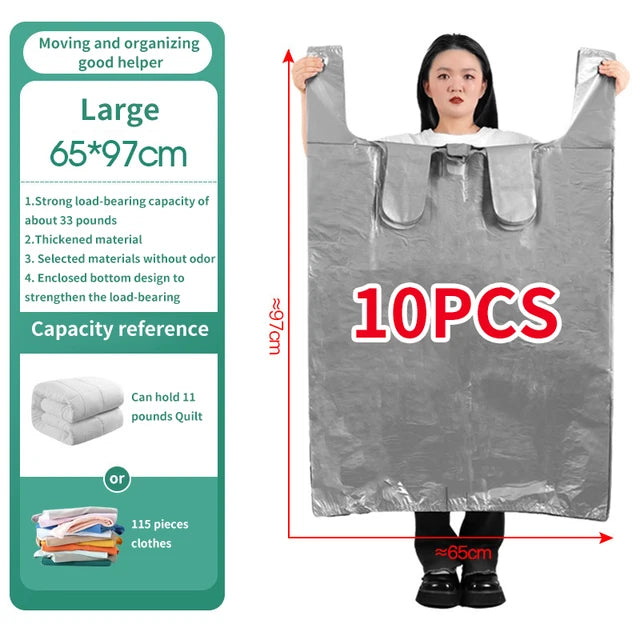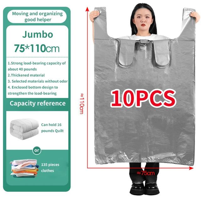 Bolsas de plástico de gran capacidad, bolsa de embalaje móvil gruesa, bolsas de almacenamiento de ropa para juguetes, edredón, manta, organizador de ropa de cama, 10 Uds.