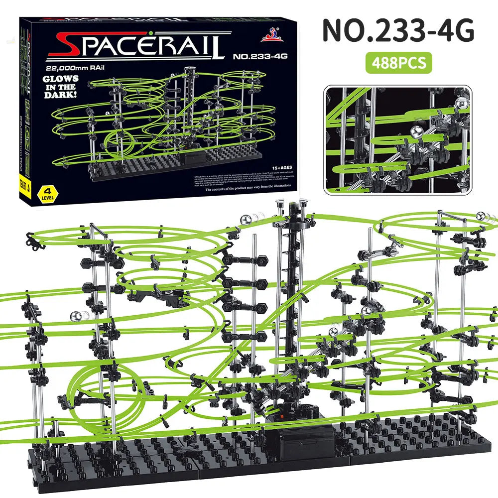 193/343/488 Uds. Bola de carrera eléctrica luminosa, construcción de mármol, Montaña Rusa de plástico, carril de nivel 1-9, pista de juguete