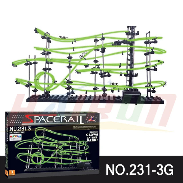 Spacerails es un divertido juego educativo que deslumbra a niños y adultos por igual. Space-rail ofrece horas de entretenimiento intrigante viendo cómo las canicas toman giros bruscos, realizan trucos impresionantes y trepan torres para hacerlo todo de nuevo. Space-rail genera gran confianza y deja al constructor con una sensación de logro. ¡Esta montaña rusa que se perpetúa a sí misma está fuera de este mundo y seguramente te entretendrá durante horas! Disfrute viendo las bolas de acero salir del elevador, rodar a lo largo de las largas vías y navegar por una impresionante serie de caídas, bucles, giros y más acrobacias, ¡antes de ser elevadas automáticamente al inicio nuevamente por el elevador a batería!