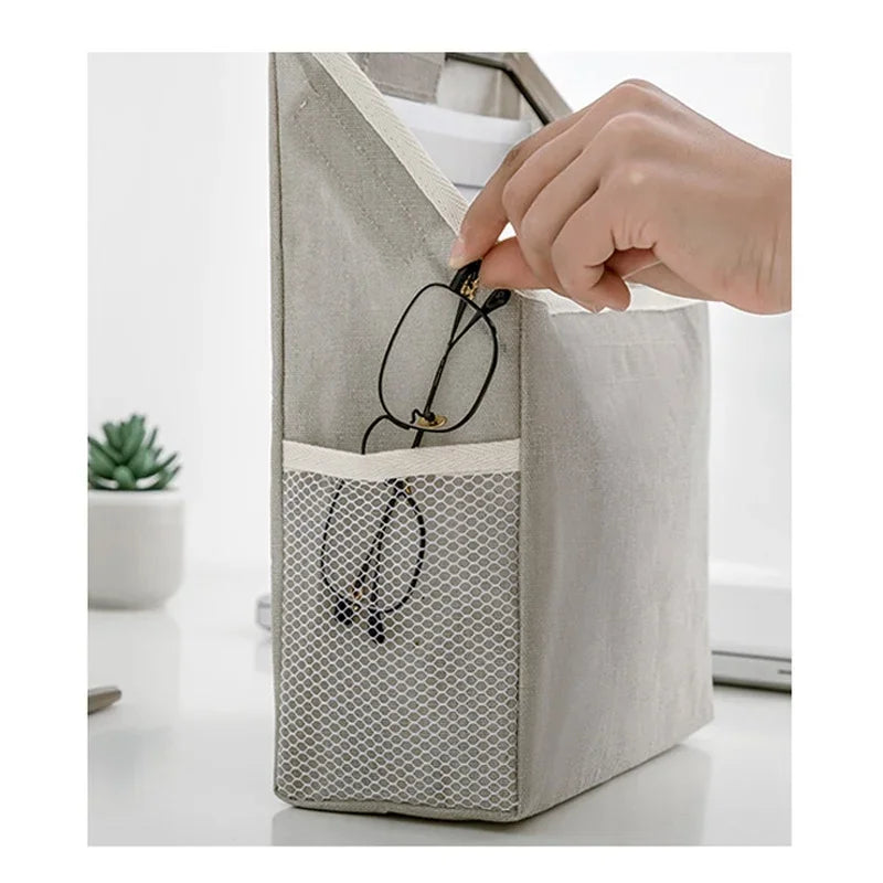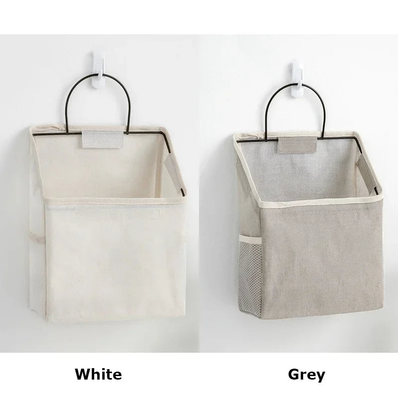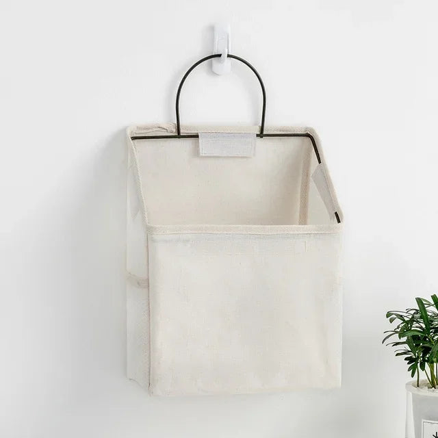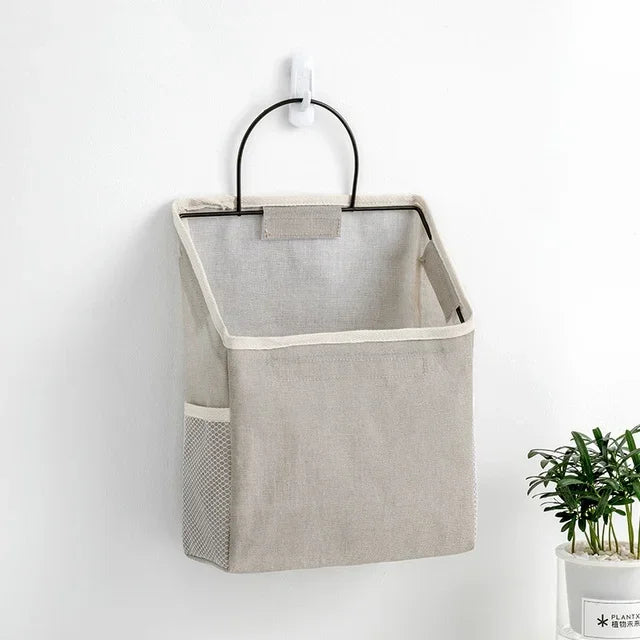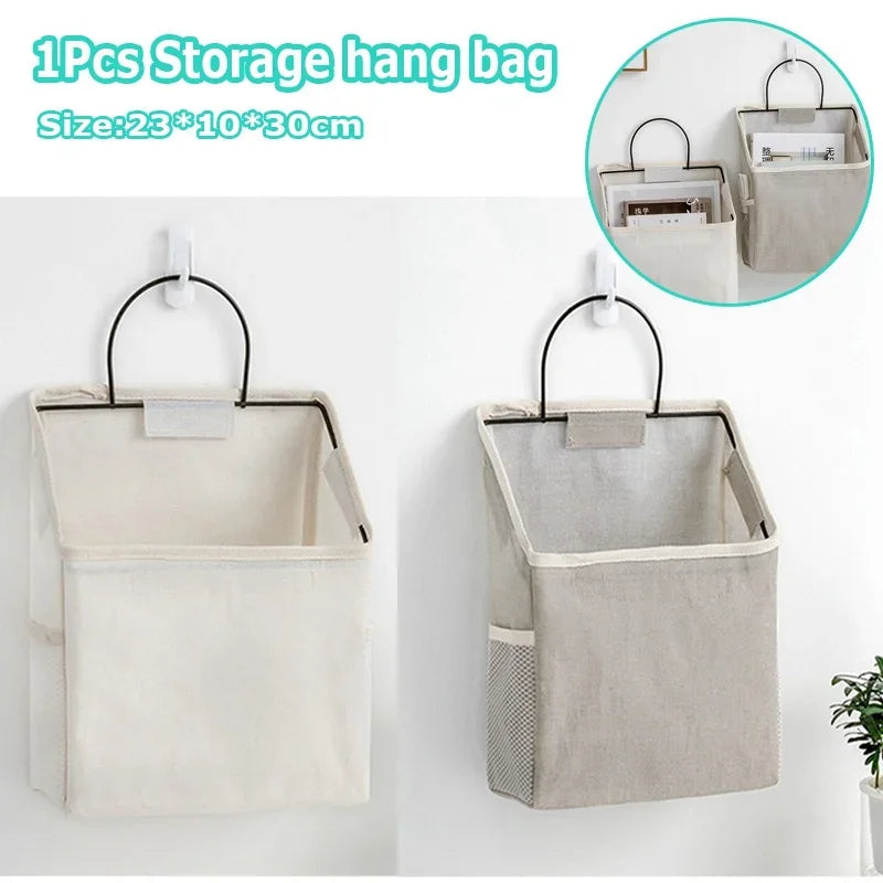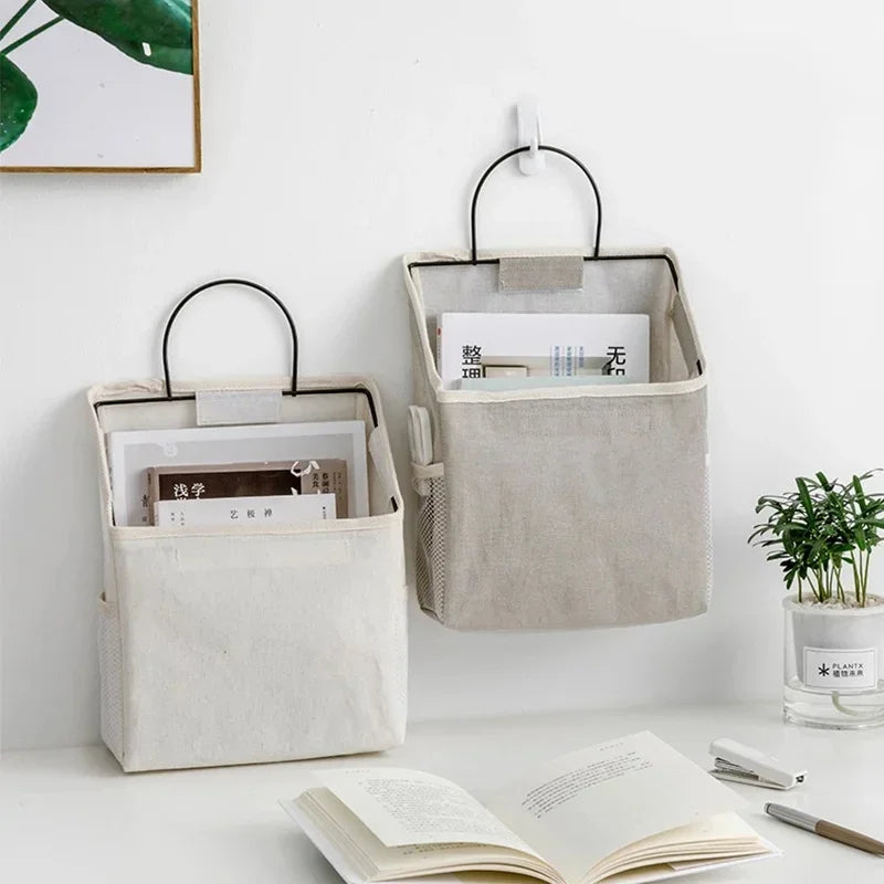 Bolsa de almacenamiento montada en la pared, cesta colgante de tela, bolsa organizadora para dormitorio, gancho para soporte de teléfono y libros, 1 ud.