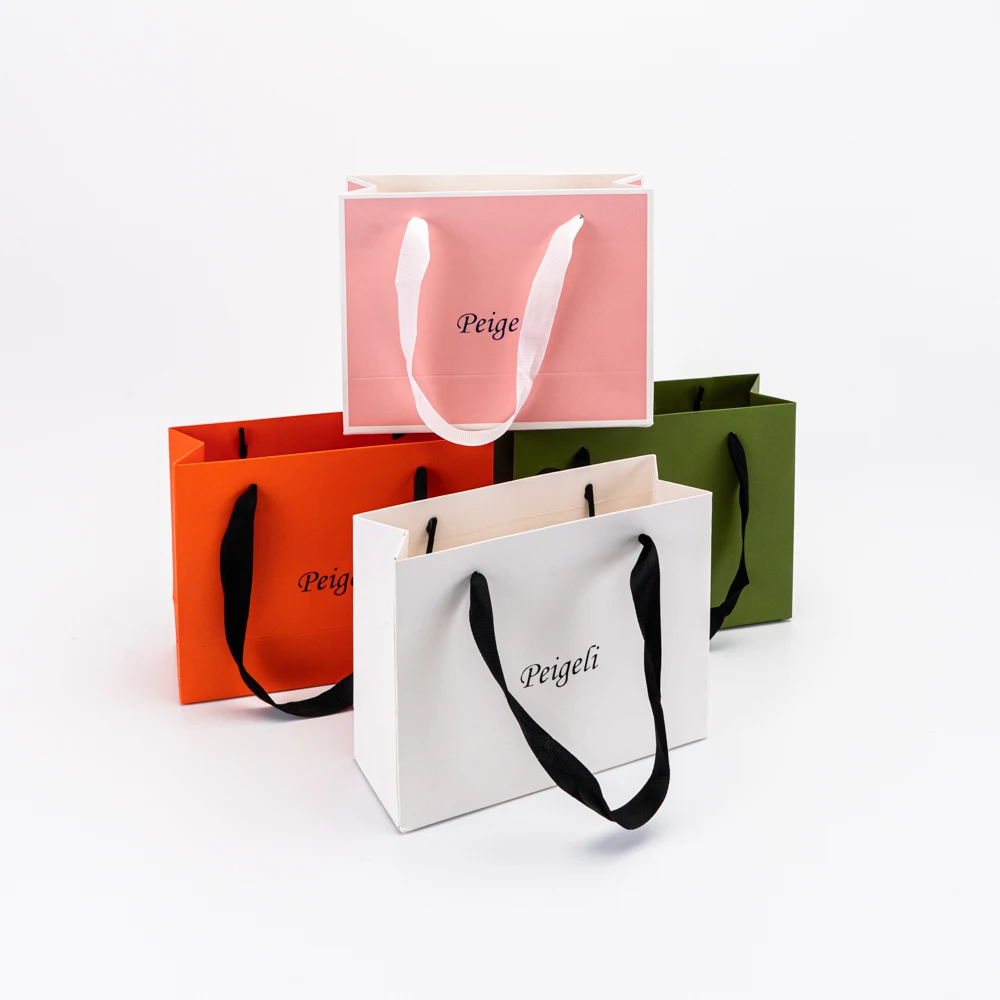 Bolsa de papel con asas, 24 Uds., a granel, 28x20x10cm, logotipo personalizado, bolsas de mercancías Kraft para compras, fiestas, manualidades, bodas, pequeñas empresas