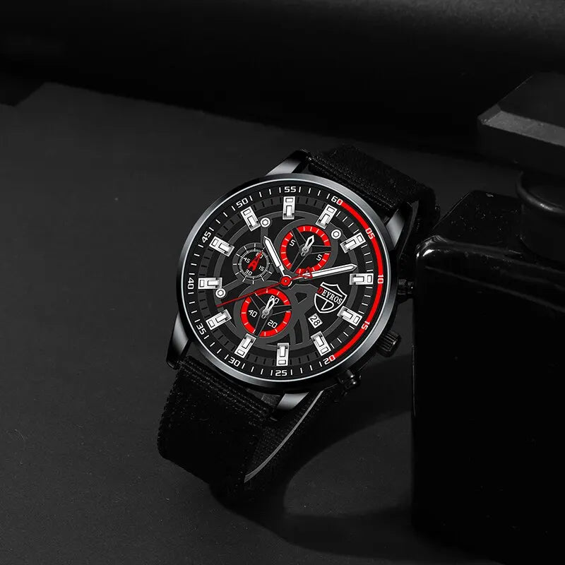 Conjunto de 3 uds. De relojes sencillos a la moda para hombre, collar, pulsera, reloj de cuarzo de nailon, reloj de pulsera informal de negocios para hombre