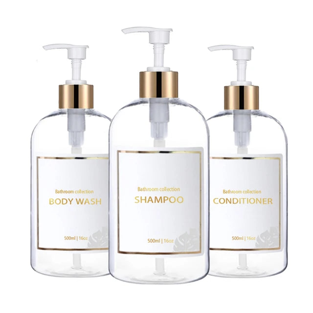 Dispensadores de baño de 500ml, botellas dispensadoras de champú y acondicionador, loción rellenable, tipo prensa, accesorios de baño, 3 uds.