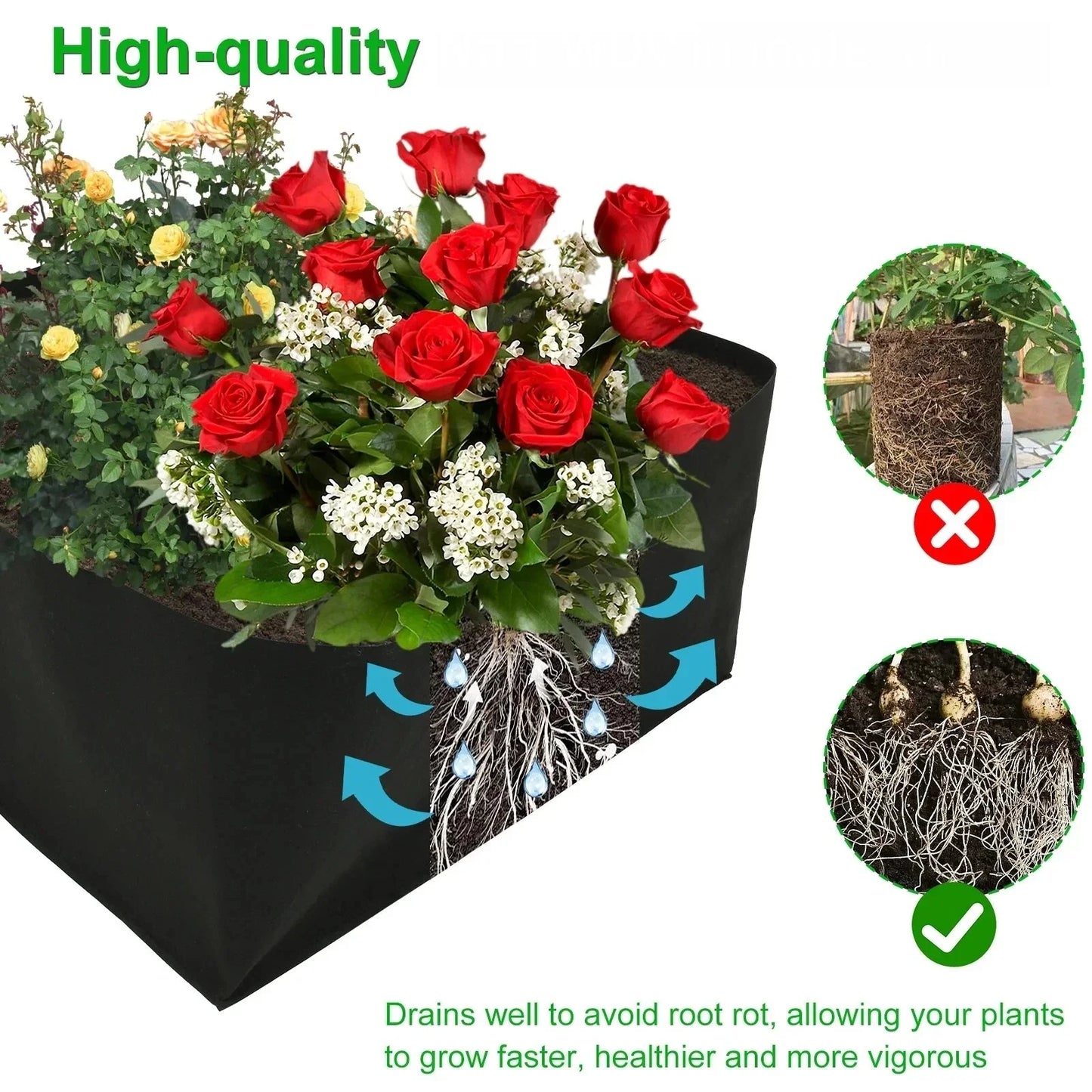 [Material de fieltro de alta calidad] Este lecho elevado para jardín está hecho de material de fieltro de alta calidad que es ecológico, no tóxico, biodegradable y duradero. Tener un buen drenaje hace que el agua drene fácilmente para evitar que las raíces se pudran y que las plantas crezcan más rápido, más sanas y con más vigor.
