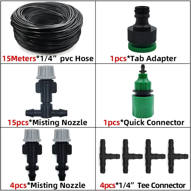 Sistema de enfriamiento por nebulización para exteriores, 5M-30M, riego de jardín, boquillas atomizadoras de latón de 1/4 pulgadas, manguera de 4/7mm para invernadero de Patio