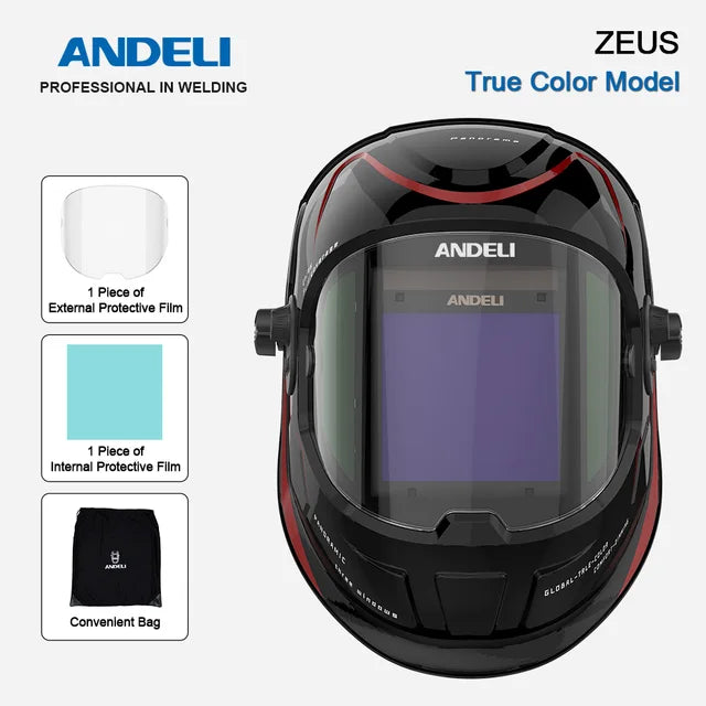 ANDELI-Máscara de soldador de 100x95mm, casco de soldadura con oscurecimiento automático, Color verdadero DIN4 1/1/1/2, Máscara de Soldadura para corte TIG MIG MMA