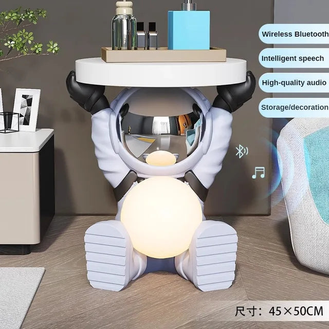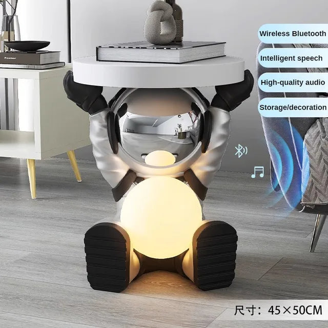 Mesa de centro de pie astronauta, accesorios para el hogar, mesita de noche, muebles inteligentes, emisor de luz, altavoz Bluetooth