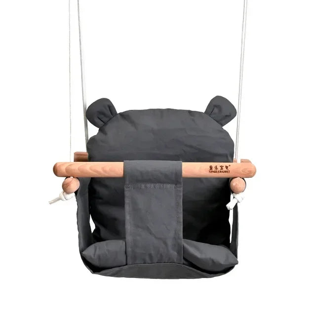 Columpio de lona para bebé, silla colgante de madera para niños, juguete para jardín de infantes, cesta pequeña para exterior e interior, mecedora oscilante Beige, juguete para bebé