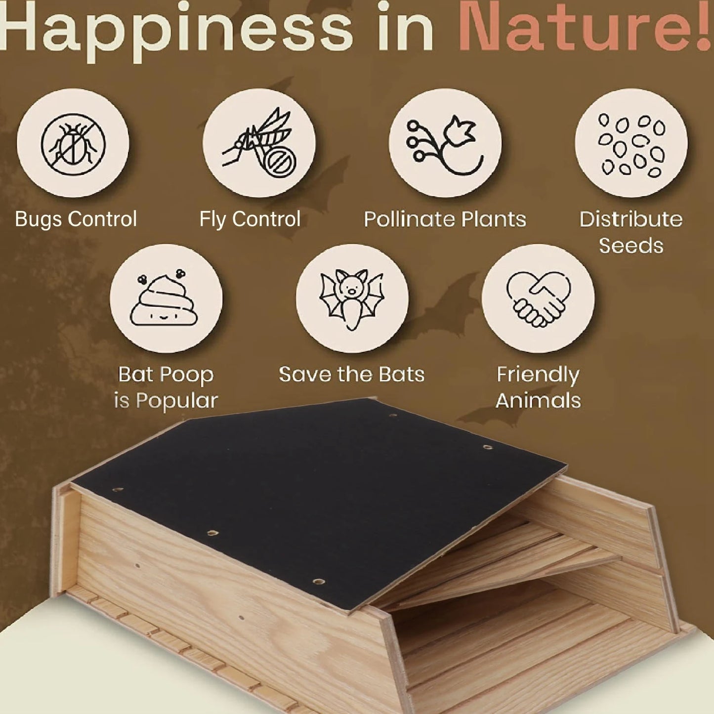 Hecha a mano y resistente a la intemperie: esta casa para murciélagos está meticulosamente hecha a mano y recubierta con materiales resistentes a la intemperie, capaces de soportar diversas condiciones climáticas, como nieve, lluvia, frío y calor.