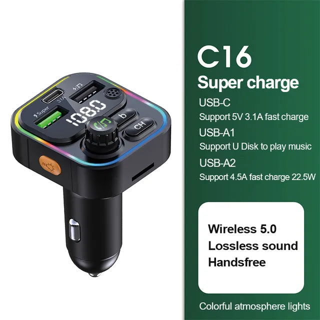 Transmisor FM Bluetooth 5,0, modulador de Radio para coche manos libres, reproductor MP3 con adaptador de carga súper rápida USB de 22,5 W para coche
