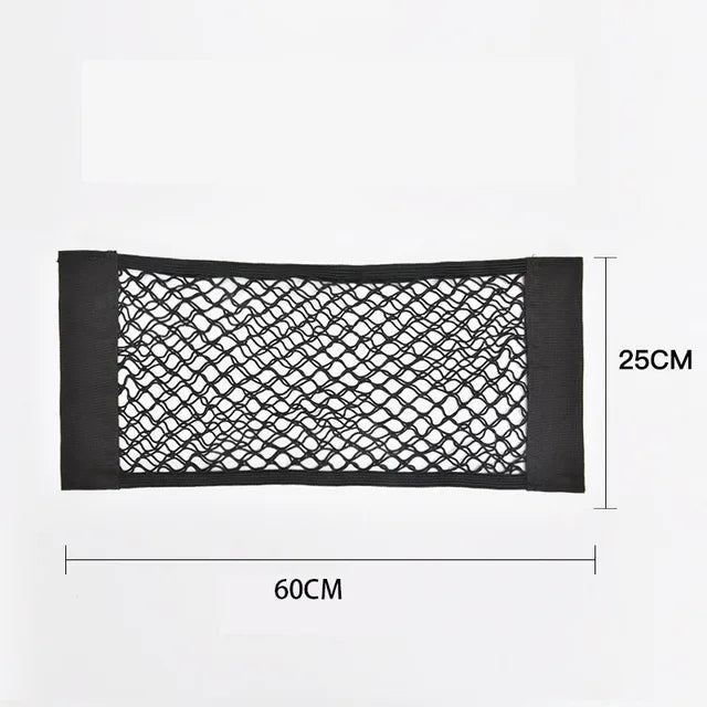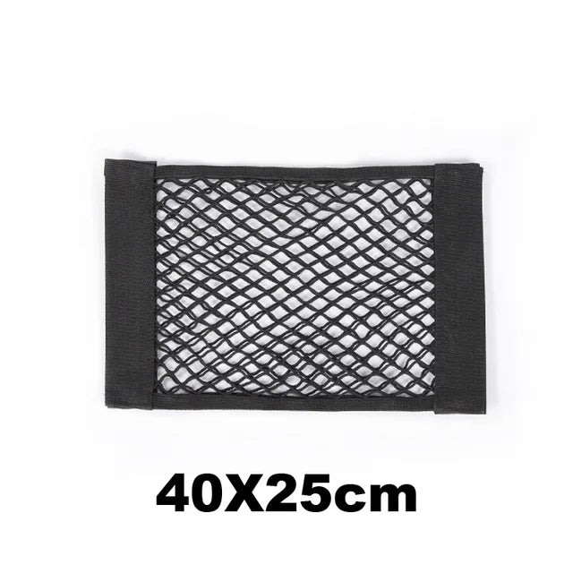 Organizador de malla para maletero de coche, red de almacenamiento trasera para asiento, bolsillo trasero, bolsa Universal para maletero, cinta mágica automática, accesorios interiores de red