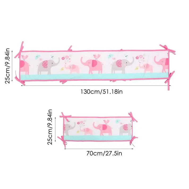 Proteja a su pequeño mientras duerme con nuestros protectores de cuna. Fabricadas con materiales amigables con la piel del bebé, estas almohadillas son adecuadas para cualquier tipo de cuna. Cada barandilla de la cama está diseñada con correas para mayor seguridad y comodidad. Este juego incluye cuatro barandillas de cama, dos de 130*25 cm y dos de 70*25 cm, lo que lo hace más cómodo para el uso diario. Mantenga a su bebé seguro y cómodo con nuestros protectores para cuna.