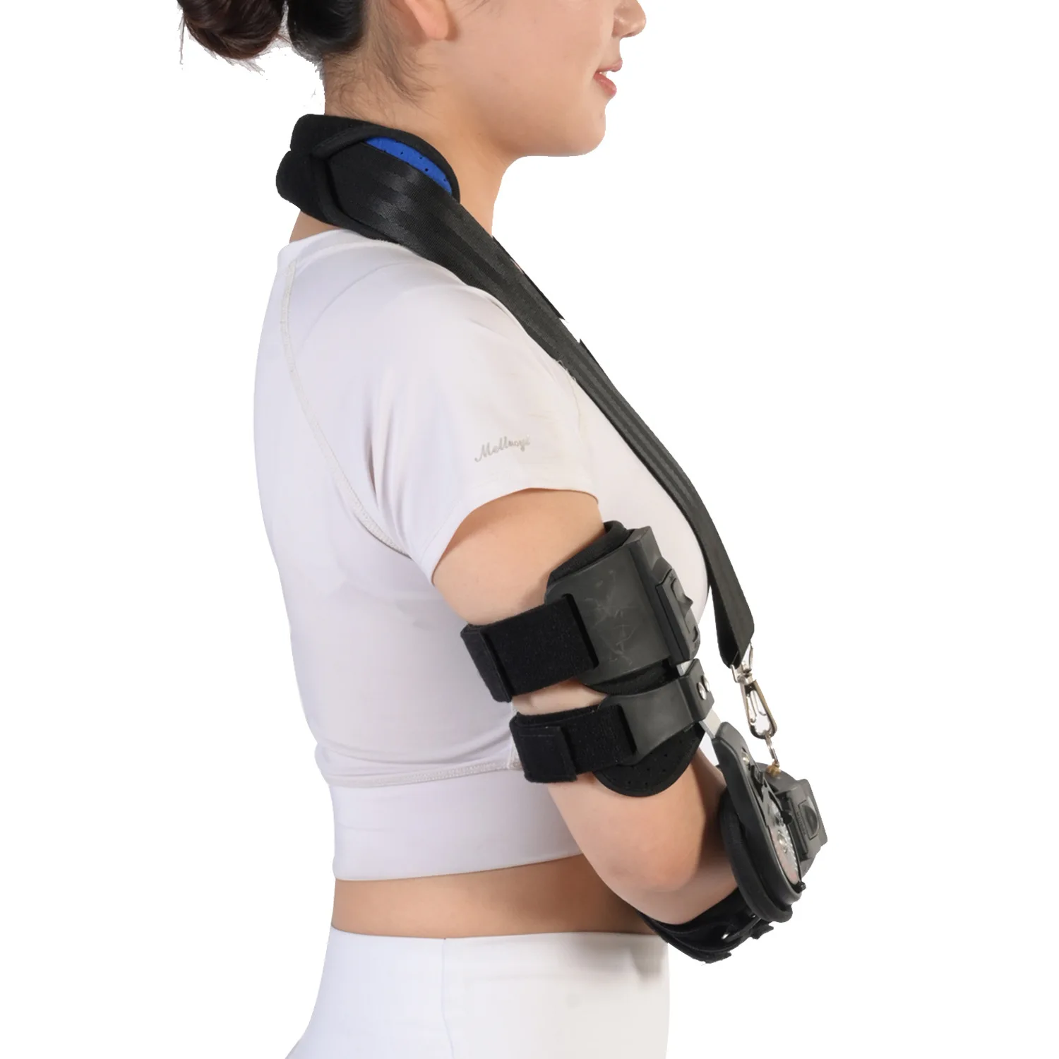 Soporte de fijación de articulación de codo ROM con bisagras, cabestrillo para brazo y hombro, tirantes para brazo, férula de soporte, ortesis, banda ortopédica, almohadilla Bel | Unisexo