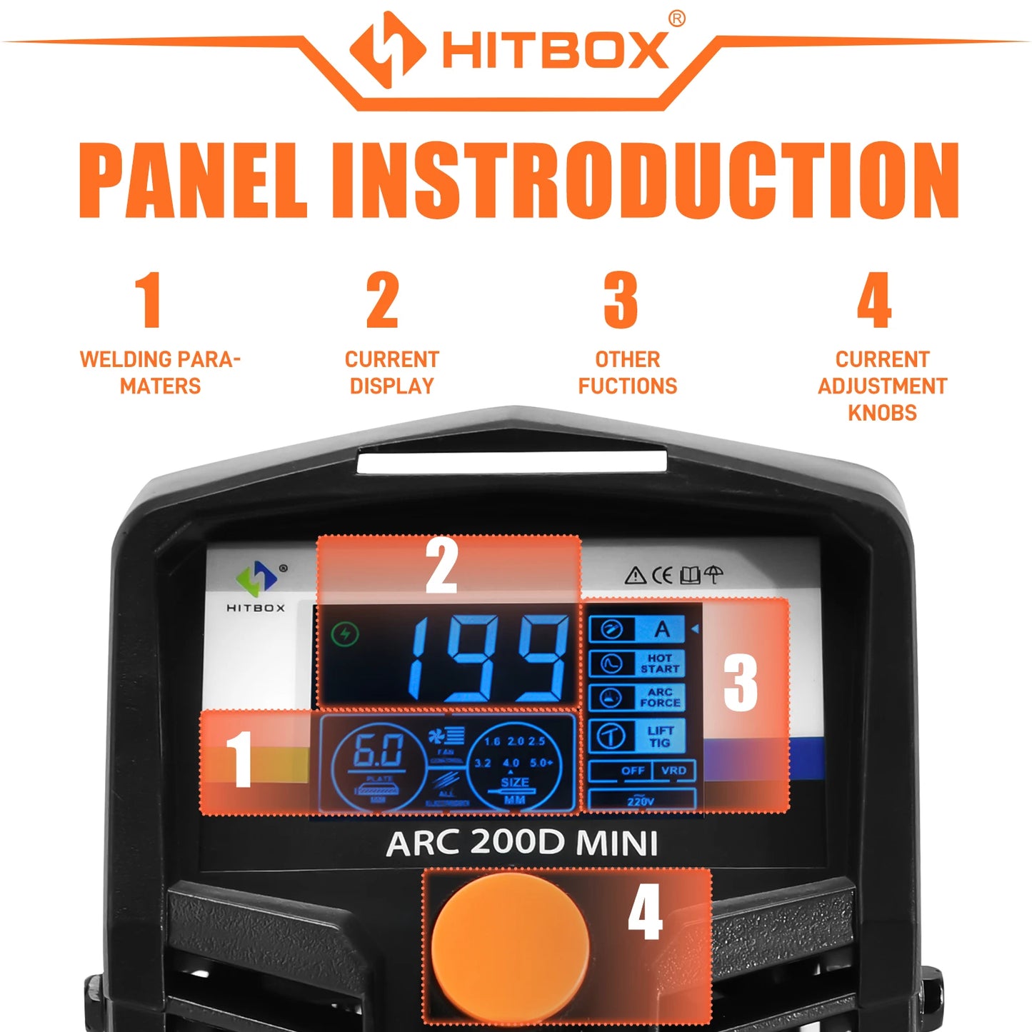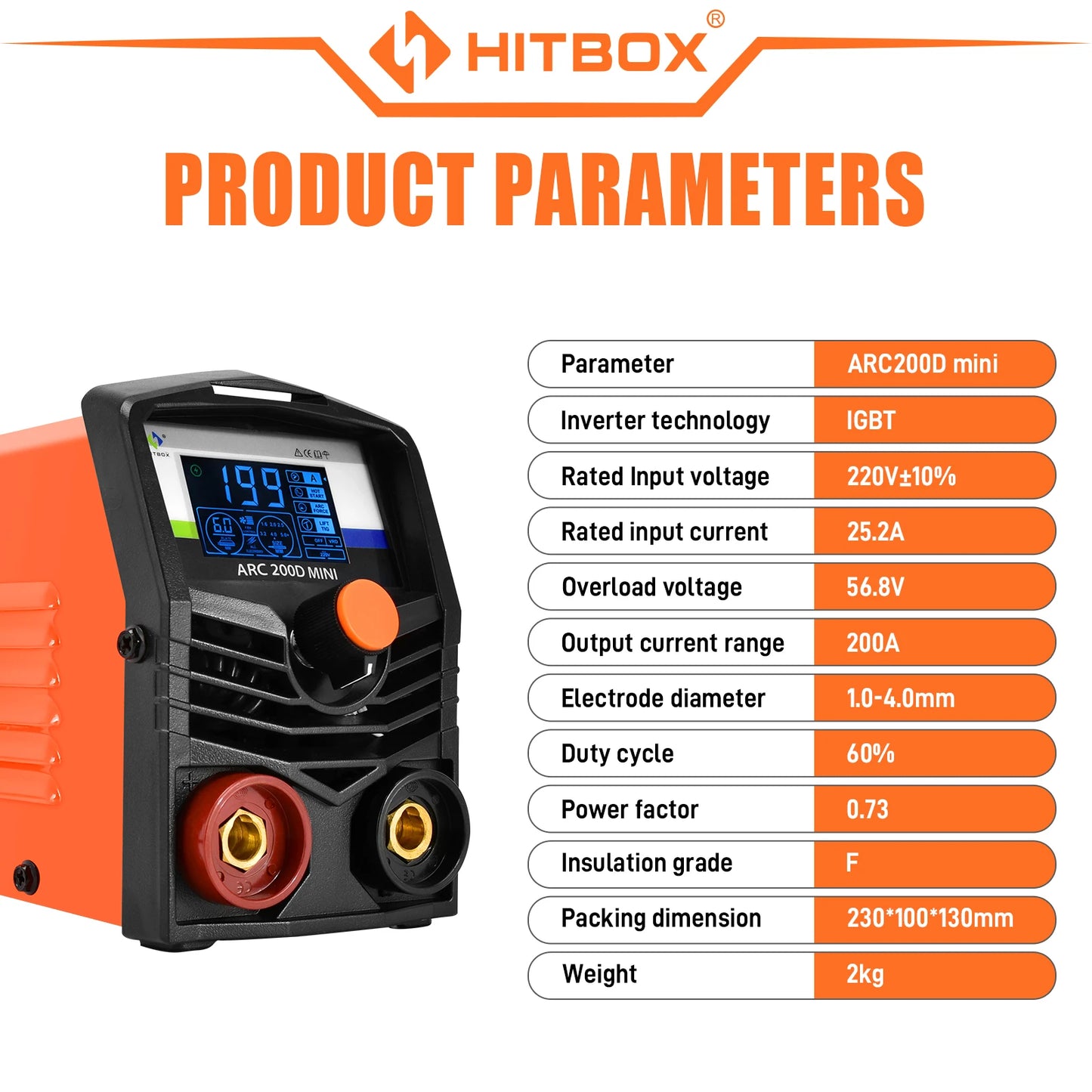HITBOX-máquina de soldadura 2 en 1, soldador de arco MMA TIG-lift ARC200D, MINI inversor IGBT, pantalla Digital LED portátil para el hogar